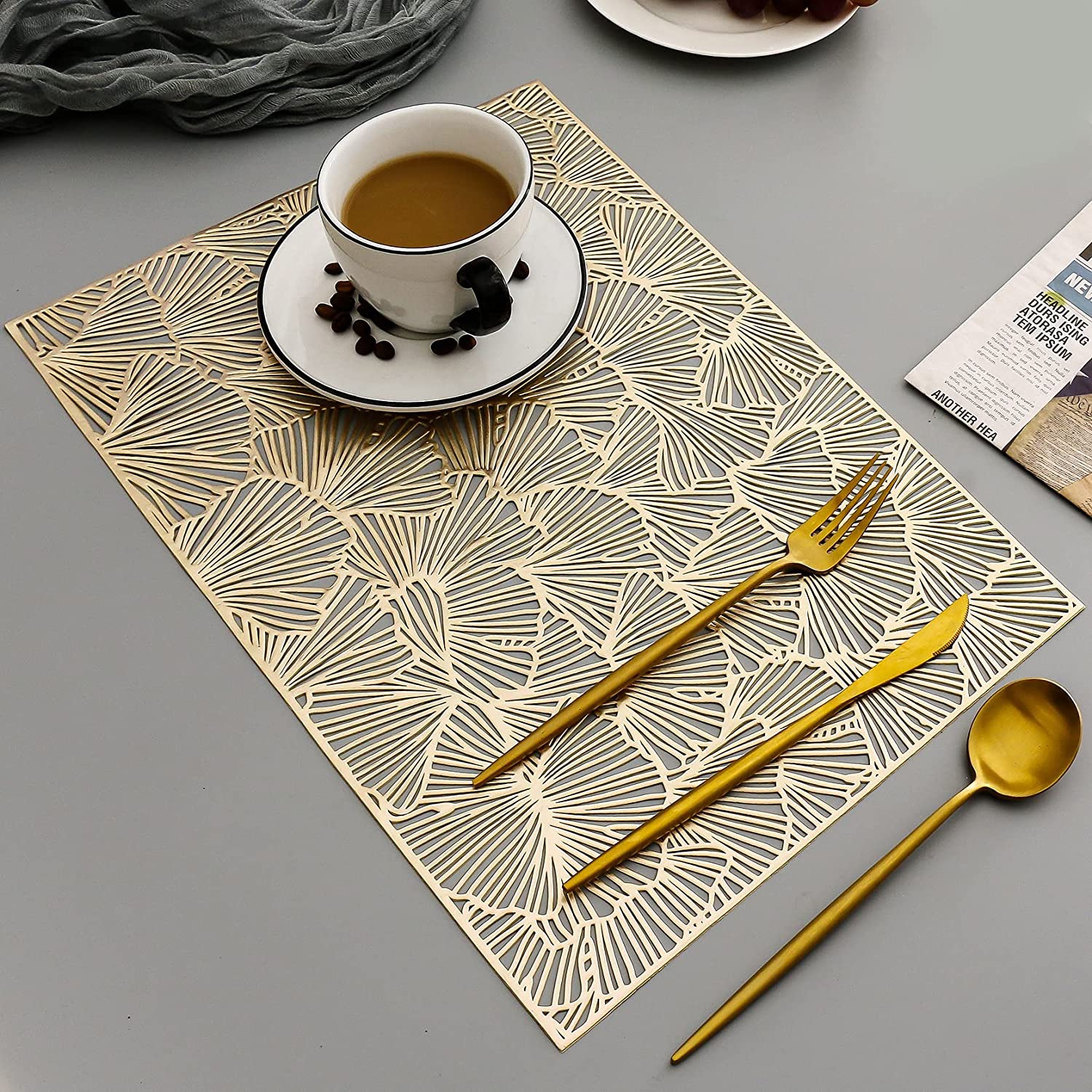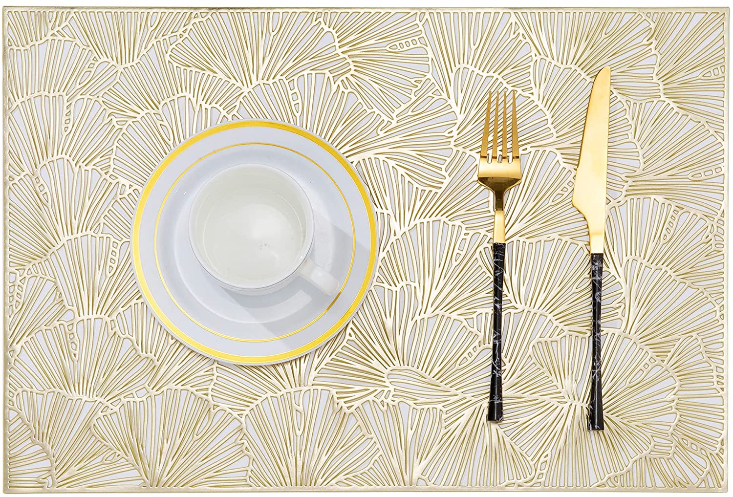 Golden Placemats/tablemats 6pc set for dining table, Kitchen Table, Restaurant Cafe, parties and wedding decor.